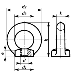 Основное назначение – закрепление цепей и канатов с помощью резьбового соединения. Размер рым-гайки определяется по резьбовой части.