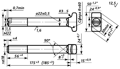 Внимание! • Резьба – по ГОСТ 24705-81, после допуска 8g по ГОСТ 16093-81. • Механические свойства – по ГОСТ 1759.4-87. • Правила приемки – по ГОСТ 17769-83. • Методы контроля – по ГОСТ 1759.0-87. • Допуски размеров, формы и расположение поверхностей и методы их контроля – по ГОСТ 1759.1-82. • Дефекты поверхности и методы контроля – по ГОСТ 1759.2-82. • Упаковка и маркировка тары – по ГОСТ 18160-72. |