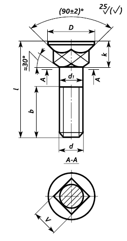 ГОСТ 7786-81 Болт с потайной головкой и квадратным подголовком класса точности С