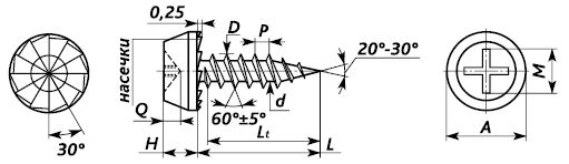• Головка: полуциллиндрическая c насечками для самоторможения, шлиц Philips №2, M=4,5-5,1.