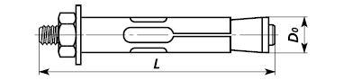 Предназначен для монтажа различных конструкций (стальные конструкции, барьеры, ограждения и т.д.) в полнотелых материалах. Состоит из втулки, шпильки с конусом на конце и гайки-прокладки. Рекомендуемая нагрузка не должна превышать 25% от максимальной (нагрузки на вырывание). Рекомендуемая нагрузка увеличивается пропорционально возрастанию прочности бетона.